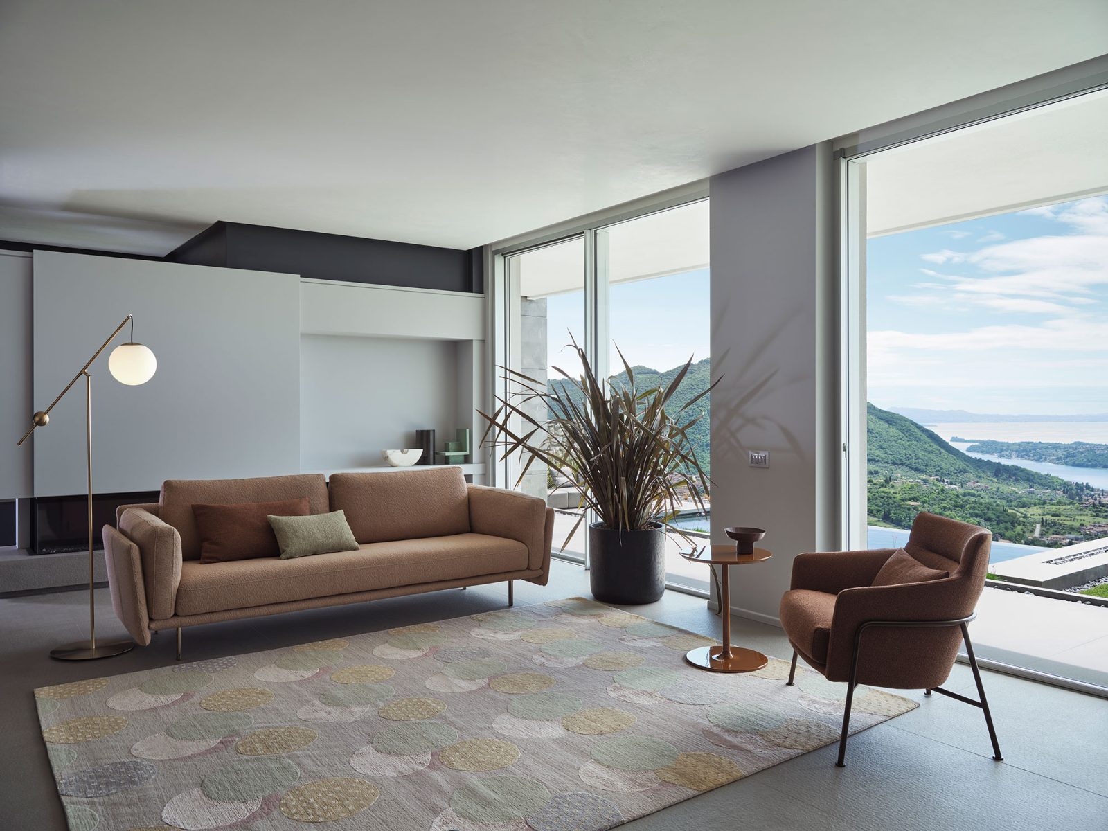 Divano geometrico e moderno, dalle linee essenziali, che gioca su un sottile equilibrio tra rigore formale e comfort. La seduta ne esalta la morbidezza, il design è moderno: perfetto per dare carattere all’ambiente.