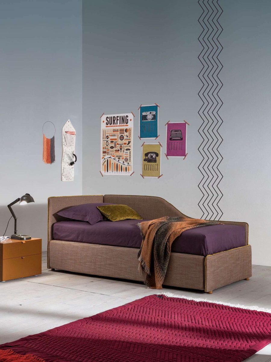 The corner configuration is truly complete and flexible. The two beds can become three. There is a handy storage container or two large practical drawers. There are comfortable orthopaedic mattresses, there’s fabric, colour and imagination. There is all the creative spirit of the Maya range by Twils.