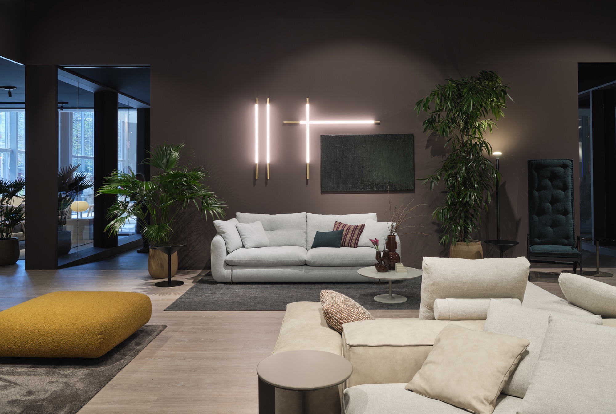 In the Better Living Collection, Kumo and Kamari Island by Paolo Grasselli captivated, with sculptural shapes and a softness that caught the eye. Matteo Ragni, art director of Twils, renewed two iconic products: the Otto coffee tables, now with new dimensions to increase versatility, and the T—Pad Piuma sofa, enriched with goose down padding for even greater comfort. The Lucille armchair by R&D Twils, with its sinuous lines, offered ideal comfort for the many conversations and encounters of these immersive days.